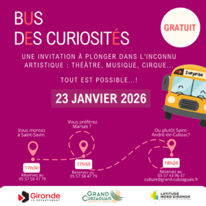 La Communauté de communes Latitude Nord Gironde vous invite à participer à son prochain apéro concert le samedi 24 janvier 2026, avec le gro(...)