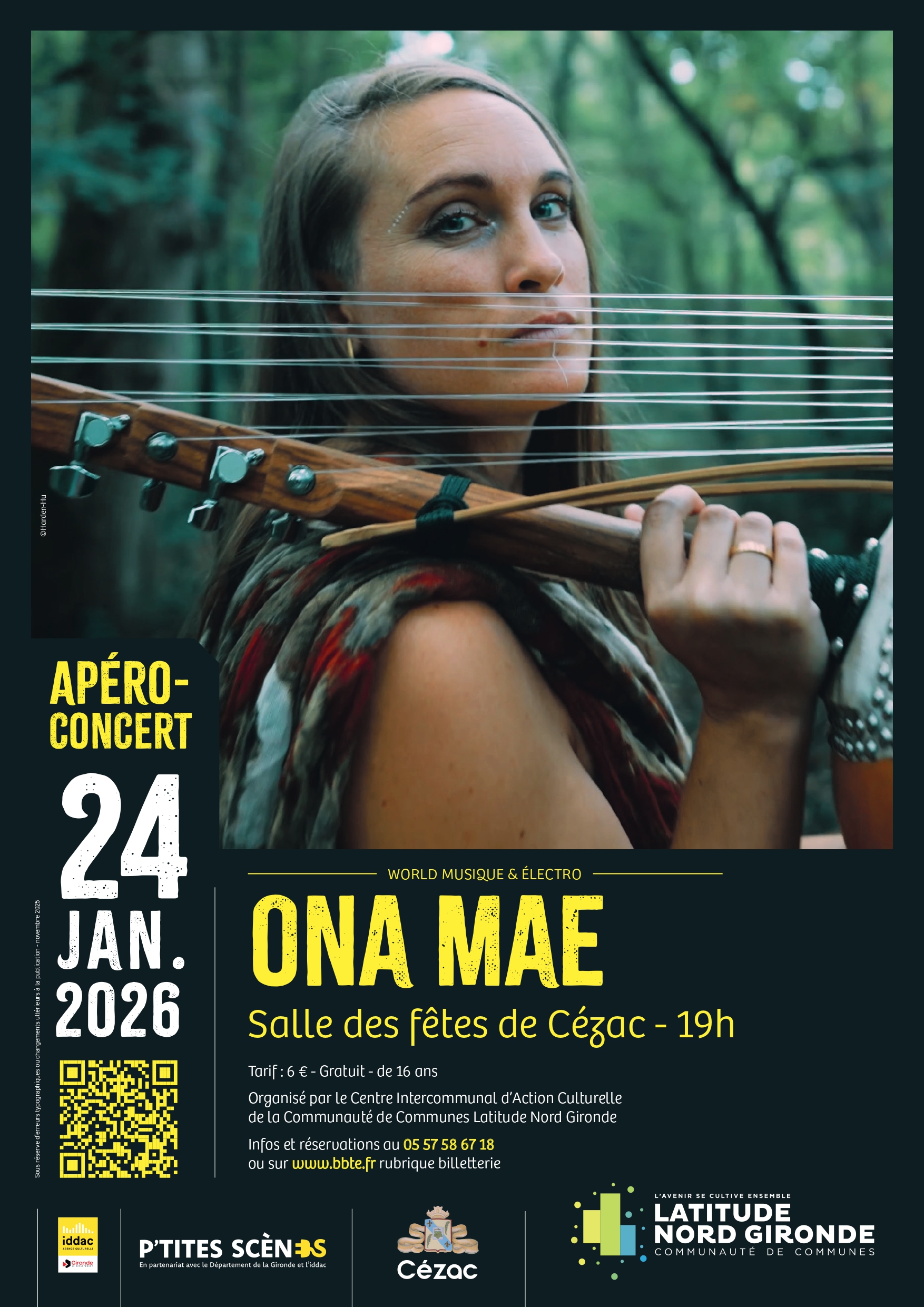 La Communauté de communes Latitude Nord Gironde vous invite à participer à son prochain apéro concert le samedi 24 janvier 2026, avec le groupe Ona Maé à 19h à la salle des fêtes de Cézac.