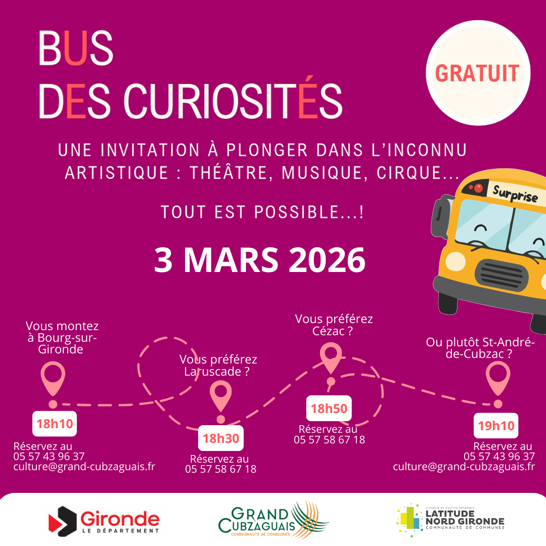 Pour sa troisième édition, le 3 mars 2026, prenez le bus des curiosités ! Plongez pendant le trajet dans une ambiance mystère et naviguez vers un lieu de spectacle inconnu ! Théâtre, danse, cirque, musique, qu’allez-vous découvrir ?