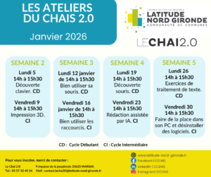 La Communauté de communes Latitude Nord Gironde vous invite à participer à son prochain apéro concert le samedi 24 janvier 2026, avec le gro(...)