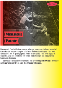 Monsieur Patate, c’est un spectacle d’acrobatie rebondissante, réalisé par la Compagnie BANCALE, proposé par le Le Champ de Foire en part(...)